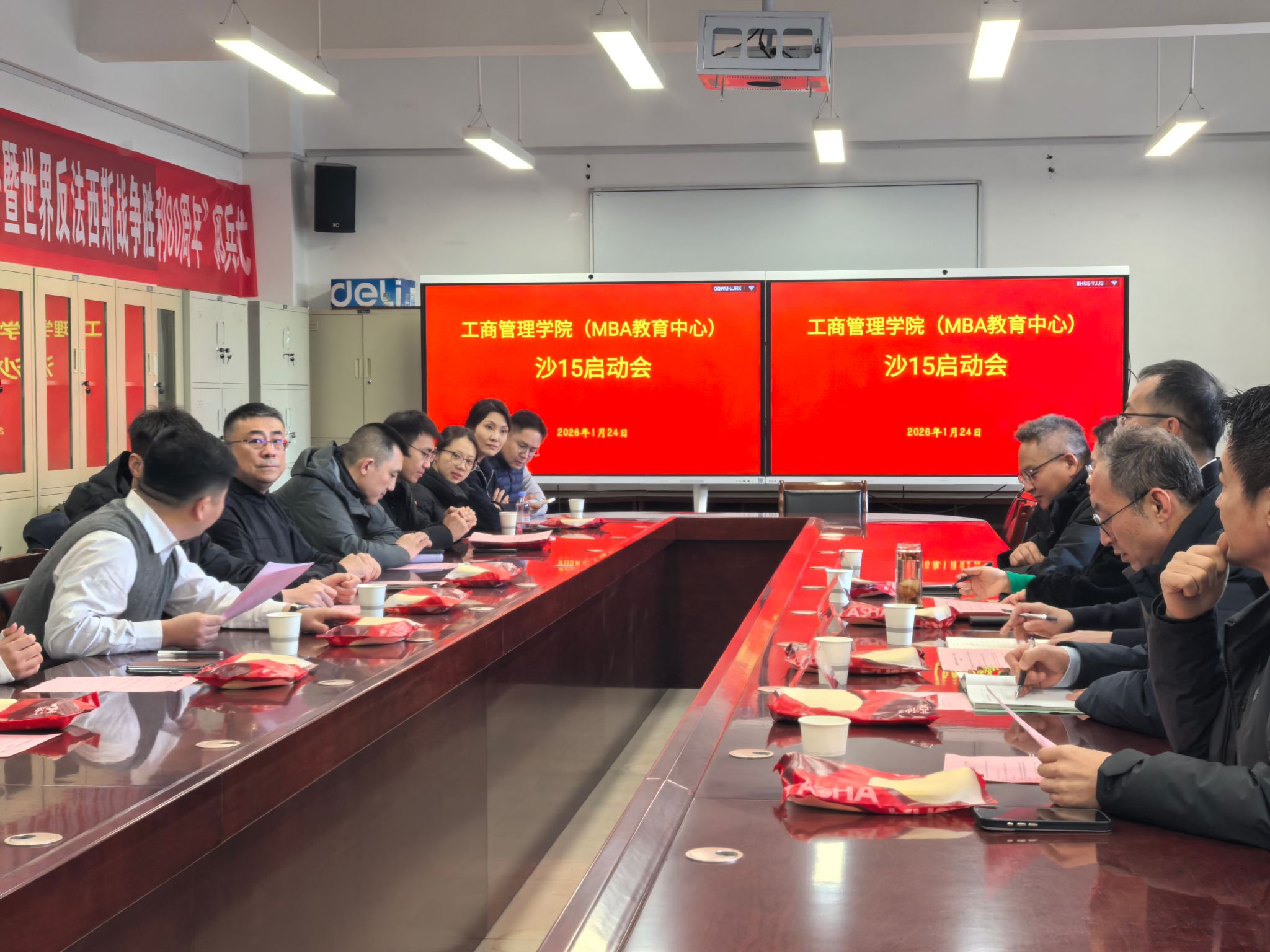 1月24日上午,以“凝心聚力战沙15,财大荣光共铸就”为主题的山西财经大学MBA沙15战队筹备启动会于学院会议室隆重举行。会议采用线上线下同步直播的方式进行,由2018级MBA校友徐强主持。学院党委书记李群生、副书记周志刚、副院长薛继东、工商管理学院校友会会长郭海明、校友代表丰开庆、沙赛组委会代表宋煜以及全体沙15预备队员共同出席了本次动员大会。会议旨在统一战队思想、明确赛事规则、拆解筹备任务、凝聚团队共识,为沙15征程奠定坚实的组织与思想基础。