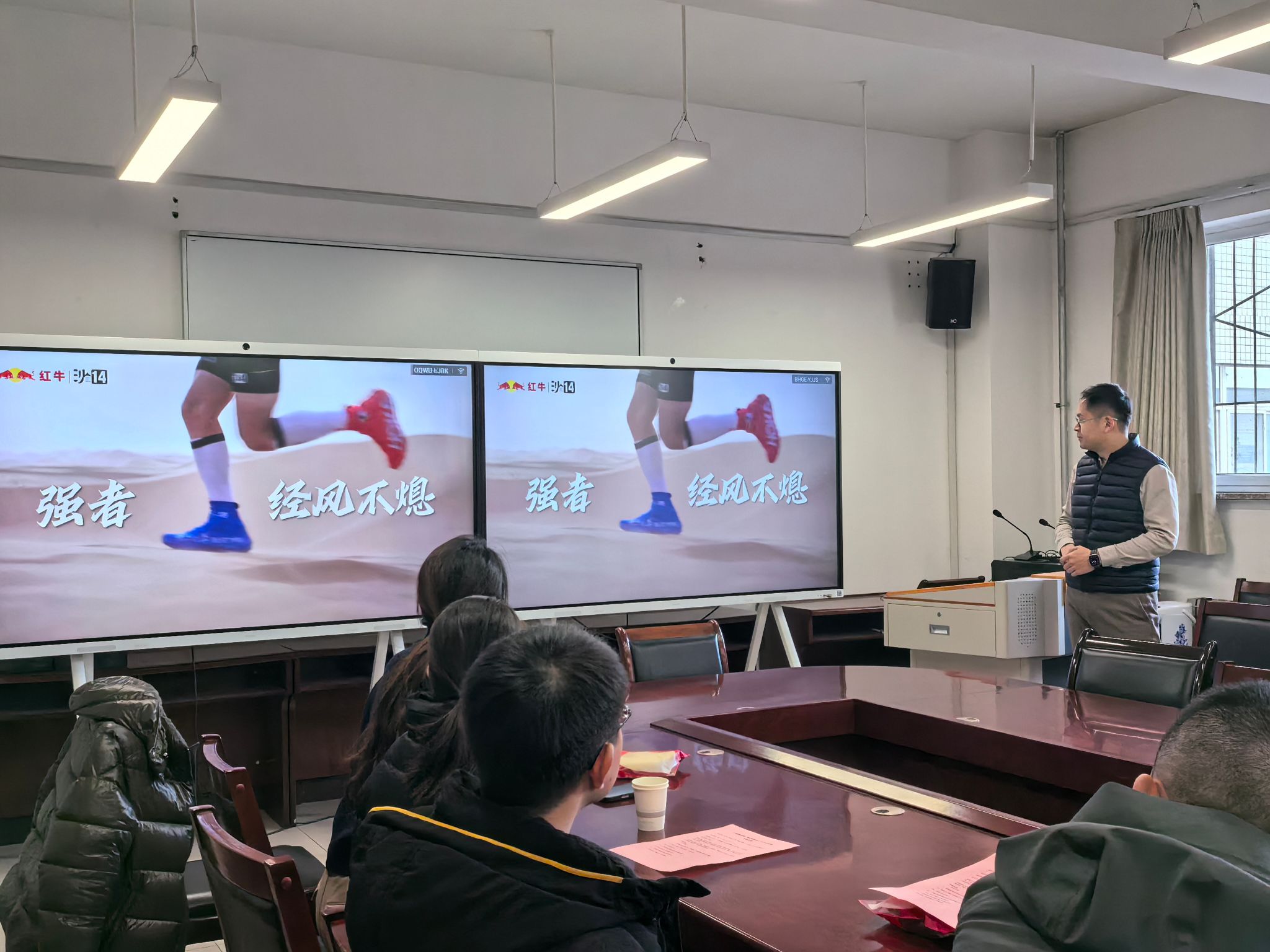 会议伊始,沙赛组委会代表宋煜详细介绍了亚太地区商学院沙漠挑战赛(简称“沙赛”)的创办背景、文化内涵与深远意义,并对赛事规则、竞技要求、安全准则进行了专业解读。他结合往届赛事经验,阐述了团队协作、坚韧意志与科学备战在挑战中的核心价值,为队员们勾勒出沙赛的全貌与挑战高度。