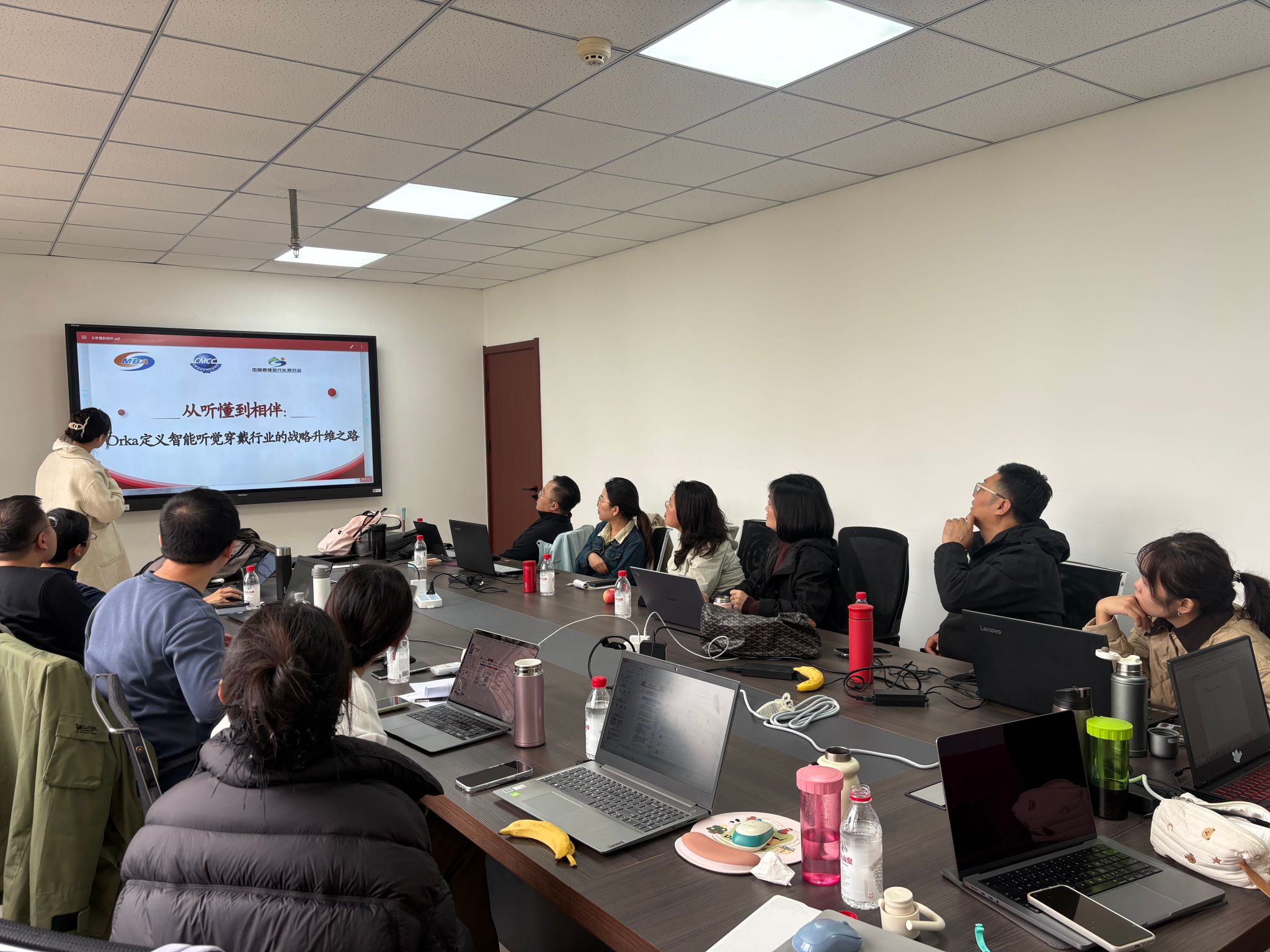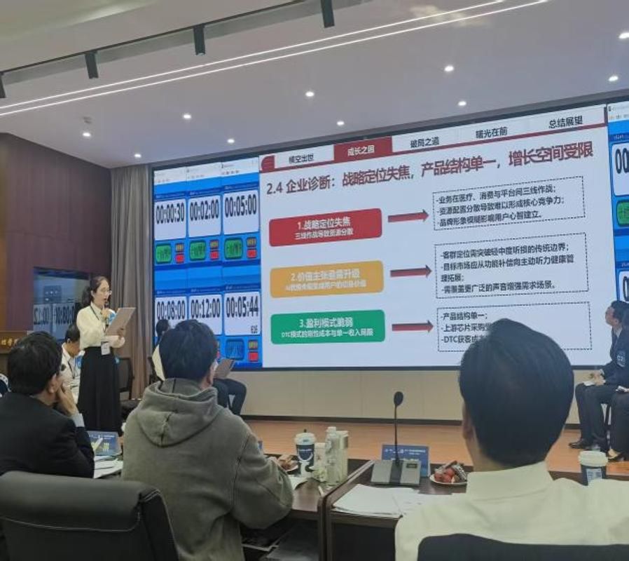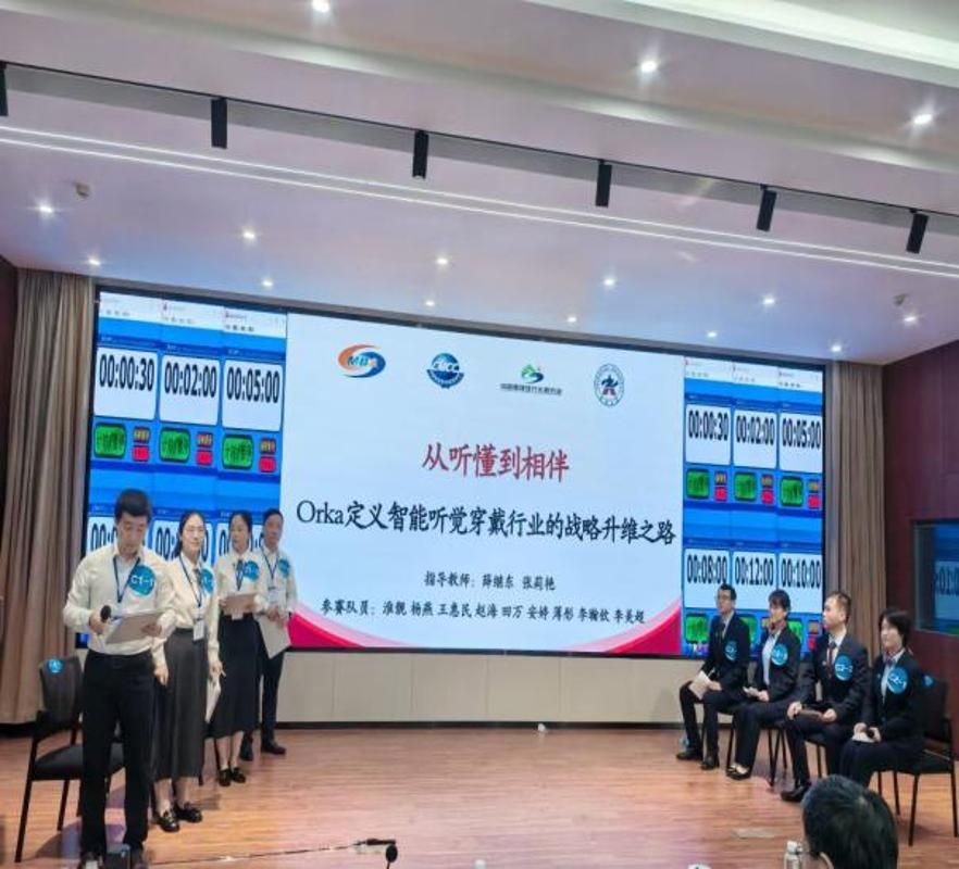 10月23日下午7点,团队抵达郑州入住。晚8点,赛事组委会下发案例《从听得见到听得懂:Orka智能助听器的破坏式创新之路》。团队即刻拆解案例核心问题,梳理行业态势,高效攻坚。高强度备赛尽显团队专业素养与协作力,指导教师解读破题指方向,成员分工明确,各司其职,确保方案落地。经过多轮案例分析与集体研讨,最终确定了“从听懂到相伴:Orka定义智能听觉穿戴行业的战略升维之路”的文案题目,从战略升维角度切入,提出为企业重新定义新品类,通过产品极致化战略、平台服务化战略和生态共同体战略协同发力,实现Orka在新的智能听觉穿戴设备品类中的升维跃迁。
