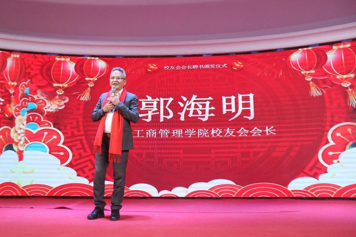 李群生表示,校友会是连接学院与校友的坚实纽带,是凝聚校友力量、共促发展的重要平台。首任会长陈仲毅在任期间带领校友会完成了从0到1的蜕变,在老会长卸任的关键时刻,郭海明会长以博大的胸怀和强烈的责任感,勇担使命,扛起了学院校友会发展的重任。相信在郭海明会长的带领下,校友会定能团结凝聚全体校友,勠力同心、奋勇前行,书写工商管理学院校友工作更加绚丽的篇章!(工商管理学院 武钰才供稿)