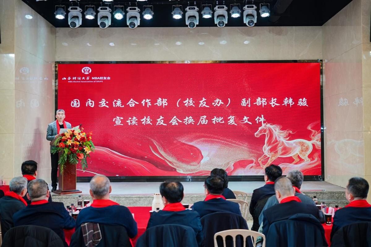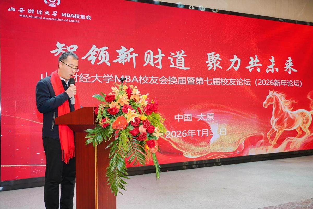 岁序同聚,共启新章。1月31日下午,山西财经大学MBA校友会第二届理事会换届大会暨“智领新财道 聚力共未来”第七届校友论坛(2026新年论坛)在太原海广海世界酒店隆重举行。国内交流合作部(校友工作办公室)负责人、工商管理学院领导班子、教师代表、校外导师代表、历届校友代表及MBA校友会理事会成员等130余人参加会议。