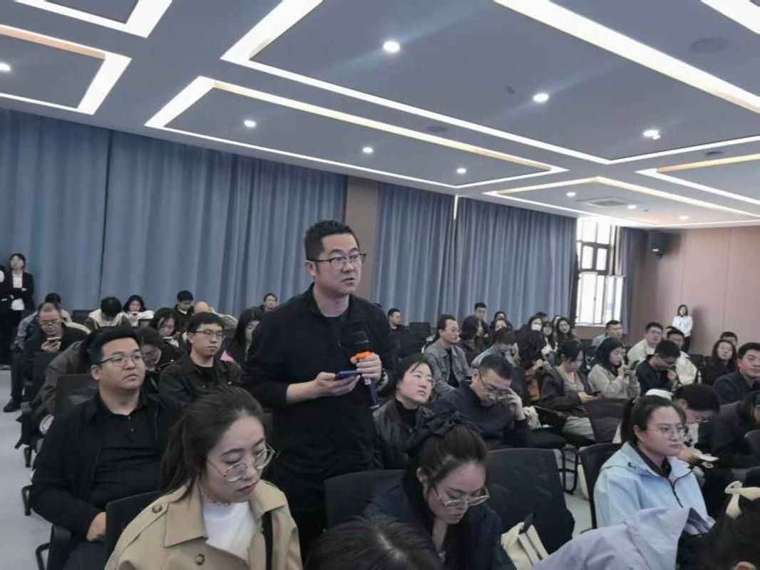 随后全体师生与企业高管在企业多功能厅举行了座谈会,座谈会由工商管理学院院长郭淑芬主持。福莱瑞达董事长许习军、副总经理杨珊、知识产权与公共事务部总经理孙林、董事长办公室主任常红霞、方案规划部部长杨炳鑫出席座谈会。许习军在致辞中回顾了企业的发展历程,强调企业持续深耕物流装备行业的决心,期待以案例大赛为契机,实现学术智慧与企业实践的双向赋能。工商管理学院副院长薛继东在致辞中指出案例大赛是学院培养应用型、创新型人才的重要抓手,福莱瑞达的管理经验为案例研究提供了鲜活样本。财大校友杨珊结合个人成长经历,分享从校园到职场的转型感悟,鼓励学生在实践中锤炼解决实际问题的能力。孙林从行业趋势、企业定位、核心业务等维度系统介绍公司发展概况,杨炳鑫则通过具体项目案例,剖析企业在方案设计、客户需求响应及团队协作中的管理实践。互动环节,师生就企业技术创新、人工智能时代产业变革、信息安全、市场痛点、团队协作等话题提问,企业代表逐一解答,现场气氛热烈。