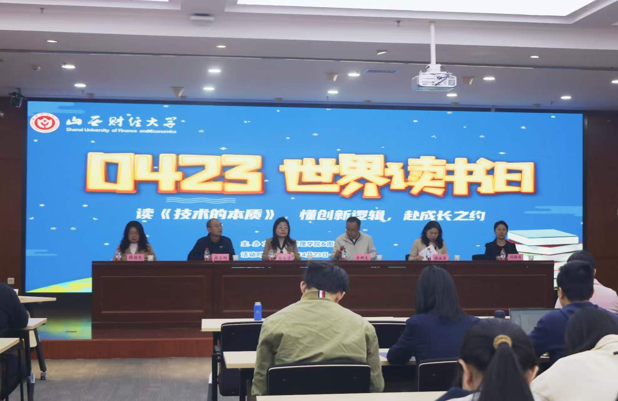 4月23日恰逢世界读书日,为响应全民阅读号召、厚植校园书香文化,以阅读启迪学术思维与创新实践,我院与校图书馆在图书馆东馆报告厅联合开启“书香致远”读书分享会并举办第一期《技术的本质》经典分享。学院党委书记李群生、院长郭淑芬、党委副书记周志刚、副院长薛继东,图书馆副馆长韩淑芬、刘焕俊等出席了开启仪式。2025级技术经济及管理班博士生高金金、贺茹、杨磊、刘云鹏、韩星竹与卢美丽老师等在本期读书分享会进行了深度分享,各年级本、硕、博学生到场共同讨论。本次读书分享开启仪式由李群生主持,第一期读书分享会由博士生刘云鹏主持。
