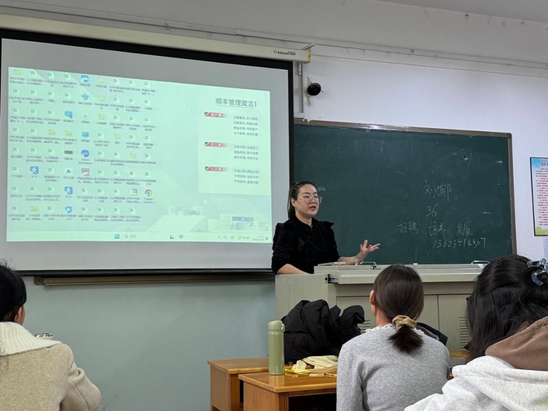 10月29日,山西顺丰速运有限公司人才生态与供应链组负责人刘娜应任课教师刘江鹏邀请走进我院2024级物流管理专业《物流学》课堂,以“智慧物流趋势下物流科技实践”为主题,结合丰富的行业经验与鲜活案例,系统解读了智慧物流发展脉络与技术应用,并与现场师生进行了充分交流与互动。