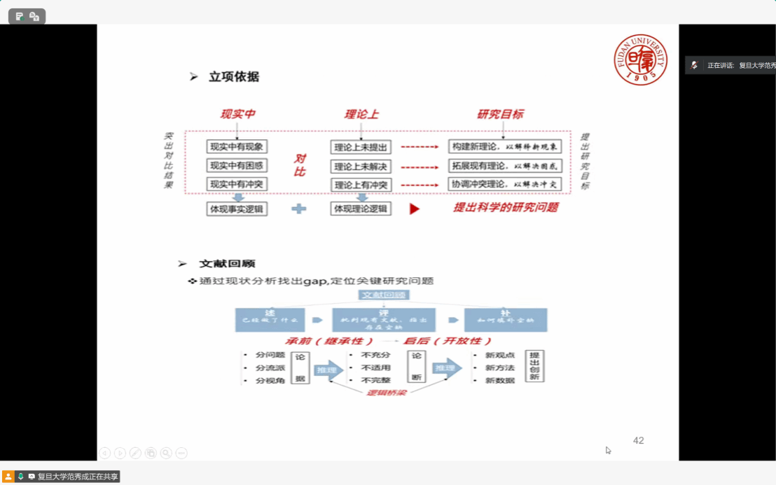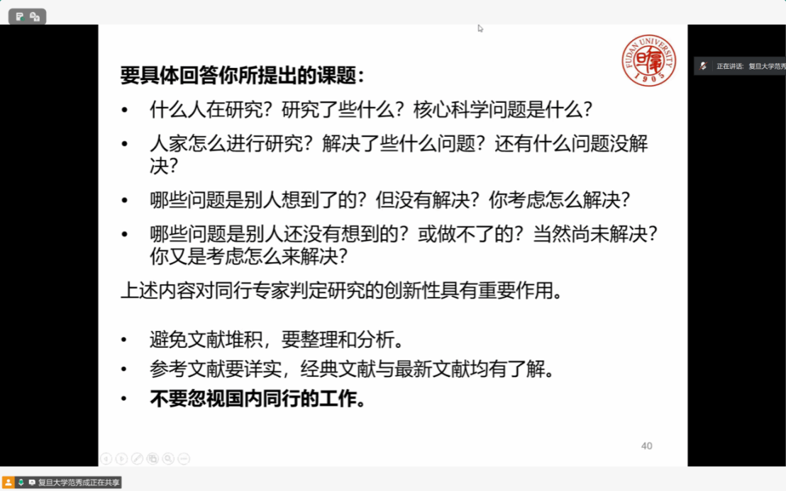申请书撰写方面,范秀成教授重点剖析了立论依据的论证逻辑与研究方案的设计要点。他提出,立论须通过严谨的文献回顾清晰界定研究缺口,进而提出科学假说;研究方案则应遵循“有限目标、抓住关键”的原则,确保技术路线可行、创新点突出。此外,应明确具体的预期成果形式与数量,并制定合理的研究进度。整个申请书应力求格式规范、论证严谨、语言精准,突出其在理论方法上的创新贡献及对管理实践的潜在价值。讲座还通过多个典型案例,展示了如何将理论思考转化为结构严谨、论证充分的申请书文本,有效提升项目申报的竞争力。