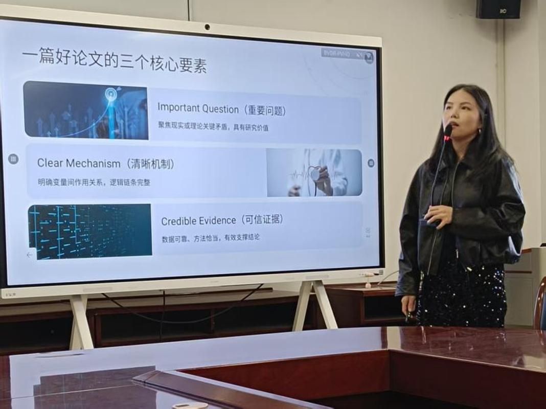胡丽霞以自身发表于《南开管理评论》的实证论文为鲜活案例,系统拆解了高质量论文从选题、机制构建、实证检验到审稿应对的全流程核心环节,直指当前科研领域“重方法、轻问题”的普遍痛点,深入剖析了论文写作与投稿中的典型误区。她强调,一篇高质量论文的核心公式是“好论文=好问题+好解释+好证据”,三者缺一不可,共同构成学术成果的核心竞争力。在选题环节,她指出AI时代创新思维与问题意识是科研核心竞争力,好选题需立足政策背景、聚焦实践痛点、挖掘文献缺口,重点关注反事实、进退两难、自相矛盾、意料之外情理之中四类高吸引力问题,确保研究兼具理论与现实意义。针对机制构建,她提出论文需穿透“a影响b”的表层结论,讲清内在因果逻辑,规避三大常见误区,通过“明确核心因果链→拆解中间路径→夯实理论支撑”三步法,构建清晰可验证的机制链条。在实证检验环节,她纠正“方法越复杂越好”的误区,强调实证核心是可信闭环,需通过稳健性检验、内生性处理等方式夯实结论,实现理论与实证高度契合。