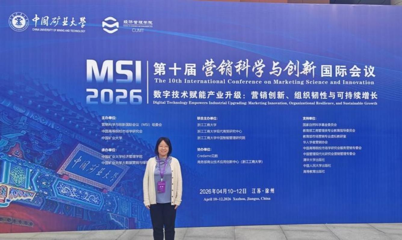 4月10日至12日,2026年第十届营销科学与创新国际会议(MSI 2026)在中国矿业大学南湖校区举行。本次会议由中国矿业大学、营销科学与创新国际会议组委会、中国高等院校市场学研究会主办,以“数字技术赋能产业升级:营销创新、组织韧性与可持续增长”为主题,吸引了来自全球近200所高校、科研机构及企业界的800余名专家学者参会。工商管理学院市场营销教研室主任周晔参加了本次学术盛会。