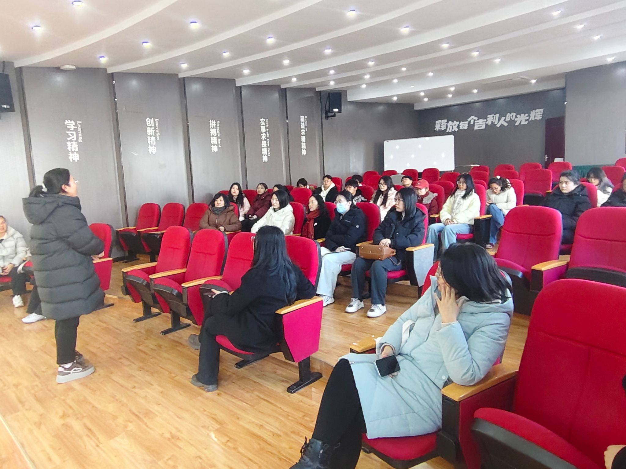 参观结束后,师生们在吉利学习大讲堂开展了交流座谈。由吉利总经办工作人员、我院2012级校友卫红艳主持,师生们围绕智能制造、质量管理、企业组织运作与职业发展等问题积极提问,企业代表结合企业情况和自身经验进行了深入解答。