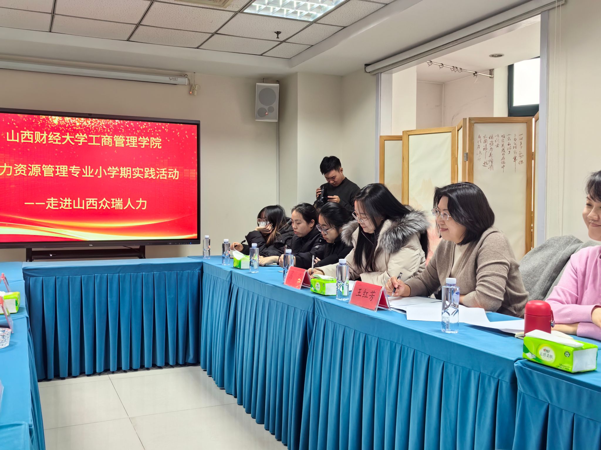 1月14日上午,我院人力资源管理专业十多名师生在王红芳和葛蓉老师的带领下,赴山西众瑞人力资源管理有限公司开展“小学期”社会实践活动。